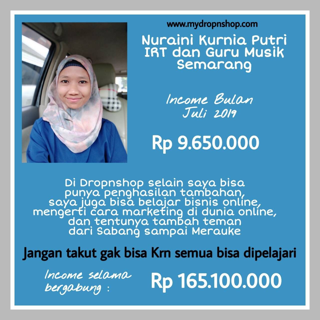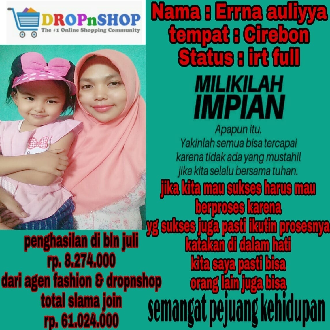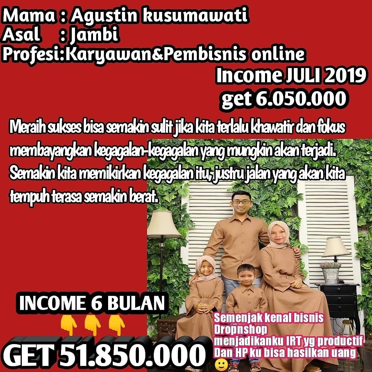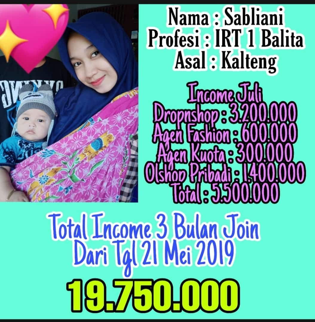 "Alhamdulillah ka Siti Sundari, Bulan ini Saya tembus 200jt laba bersih dari Olshop. Terima Kasih sudah dikenalin bisnis ini. Benar-Benar merubah nasih saya sekeluarga."