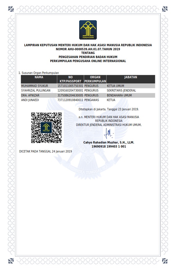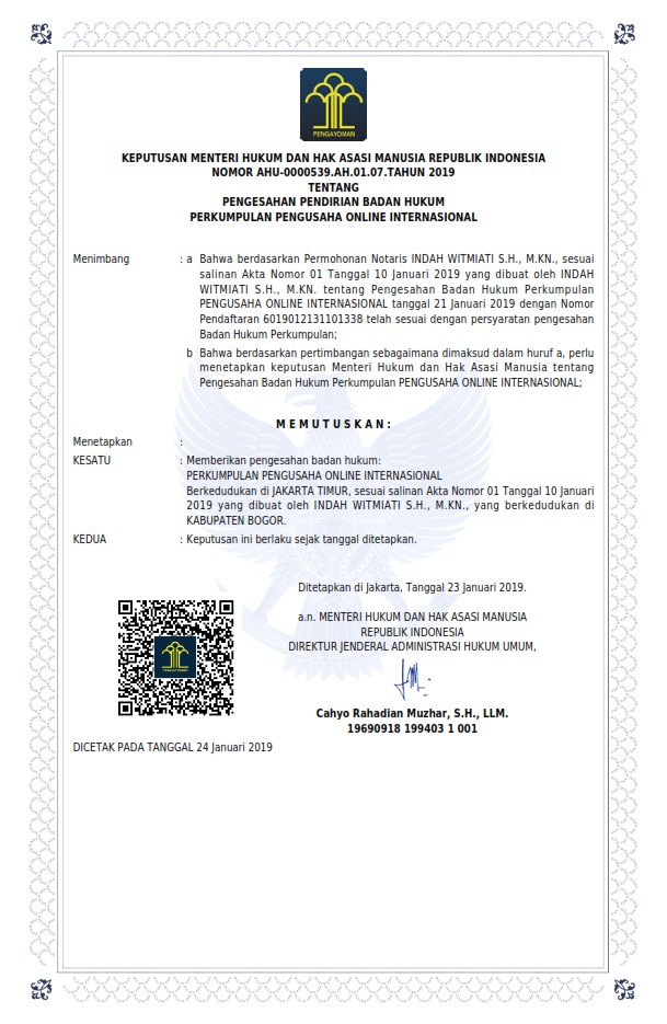 BERDASARKAN UU NO. 17/2013 TENTANG ORMAS DENGAN BADAN HUKUM : AHU-0000539.AH,01.07