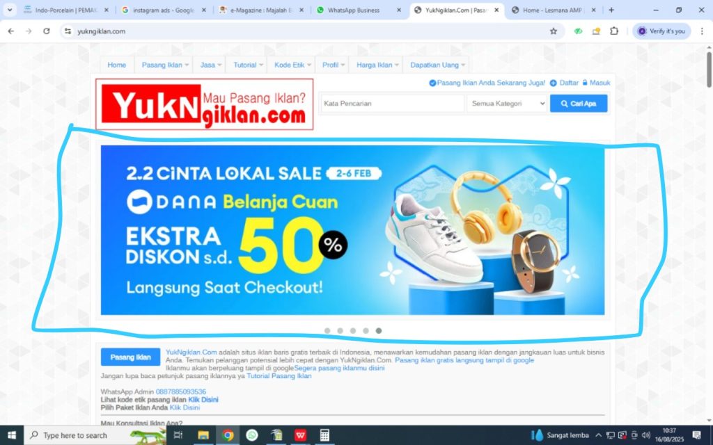 Untuk iklan banner hanya 50K saja selama 40hari.