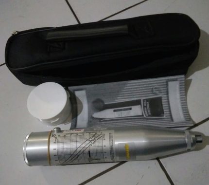 Untuk kontrol kualitas yang cepat dari pekerjaan beton dengan built dalam skala Pointer dan grafik untuk berbagai sudut. Jenis kisaran N 10-70 N mm2 100-700 kgf cm2 Energi Dampak 0 225 mkg 2 207 joule Termasuk sertifikat kalibrasi oleh KAN Untuk pengujian kekuatan non destruktif dari beton dan komponen struktural. Dalam operasi palu hits beton pada energi didefinisikan. rebound tergantung pada kekerasan beton. Melalui penggunaan tabel konversi termasuk nilai Rebound dapat dikonversi ke kuat tekan. Standar Type N palu yang menampilkan nilai-nilai Rebound pada skala geser mekanik. Untuk menguji komponen struktur berdinding tipis dengan ketebalan kurang dari 10 cm atau inti batu