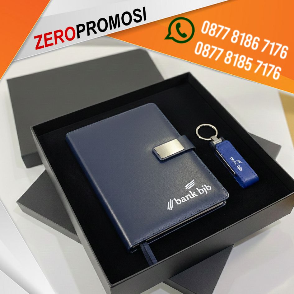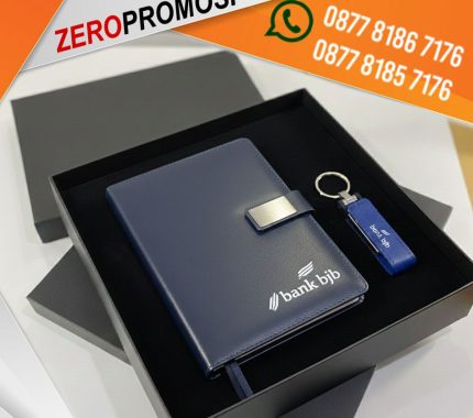Gift set eksklusif yang menggabungkan agenda leather dan flashdisk dalam satu paket premium. Desain elegan dan profesional, cocok digunakan sebagai corporate gift maupun souvenir eksklusif yang memberikan kesan berkelas dan fungsional.
