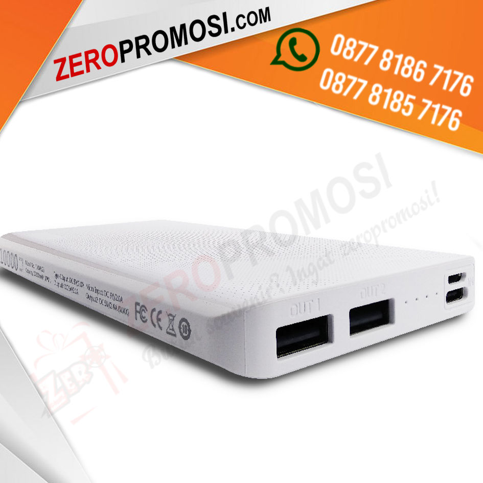 Souvenir powerbank dengan kapasitas 10.000mAh, desain elegan, dan area cetak luas. Pilihan tepat untuk meningkatkan citra perusahaan Anda
